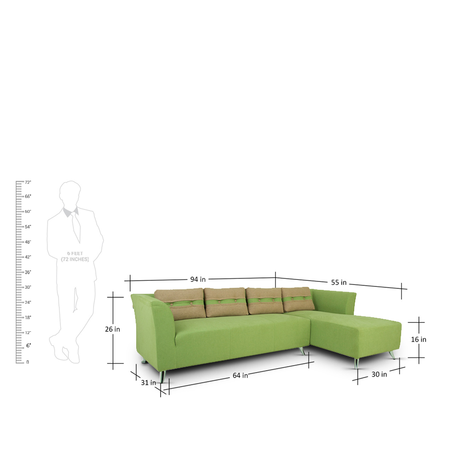 Dimension : Three Seater : H 26 x W 64 x D 31; Lounger : H 26 x W 30 x D 55; Seating Height – 16 (all dimensions in inches)