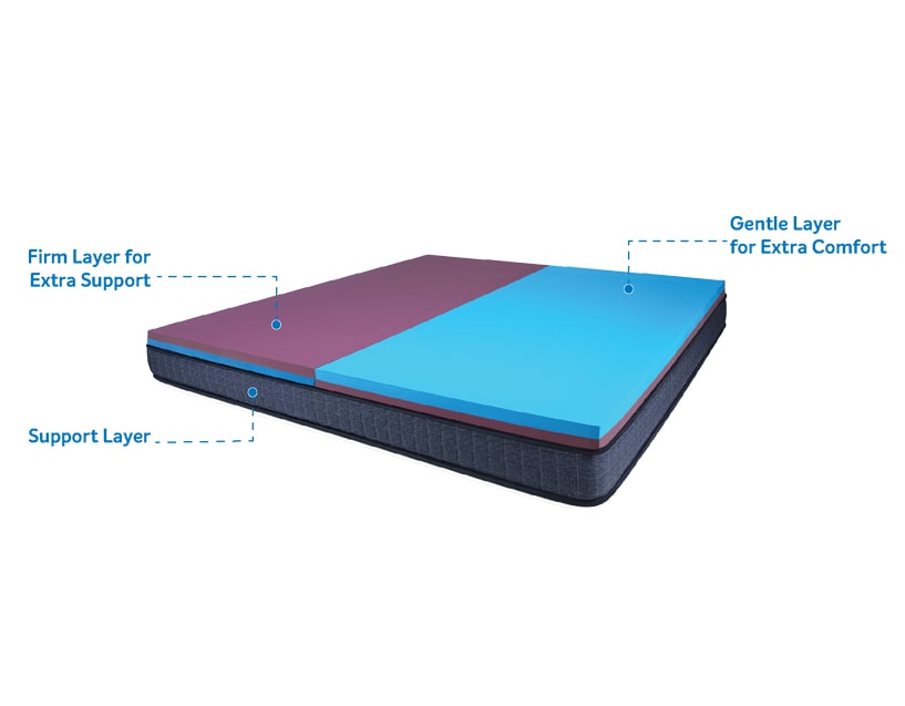 The Cocoon introduces India to the revolutionary Half & Half concept. Depending on each partner’s personal preference, each side of the bed can be set to a different feel – Gentle or Firm. Both partners get exactly what they want, while sharing the same bed.