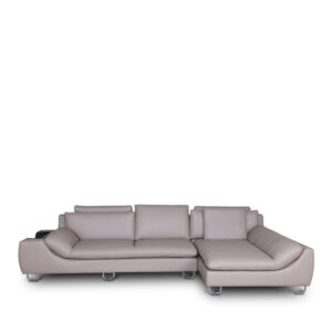 3 Seater sofa In Half Leather  with matching Leatherette./Colour- Grey./Leg- SS leg./Headrest- Adjustable/Available : 2 STR & 1 STR